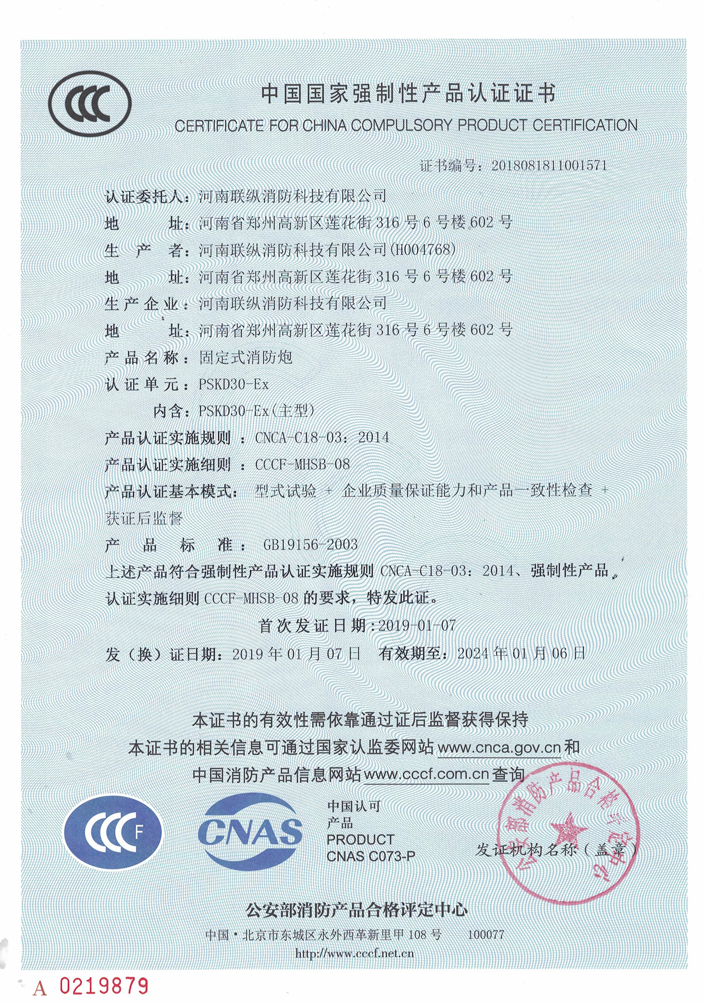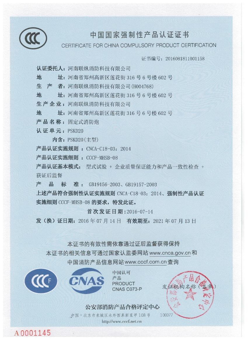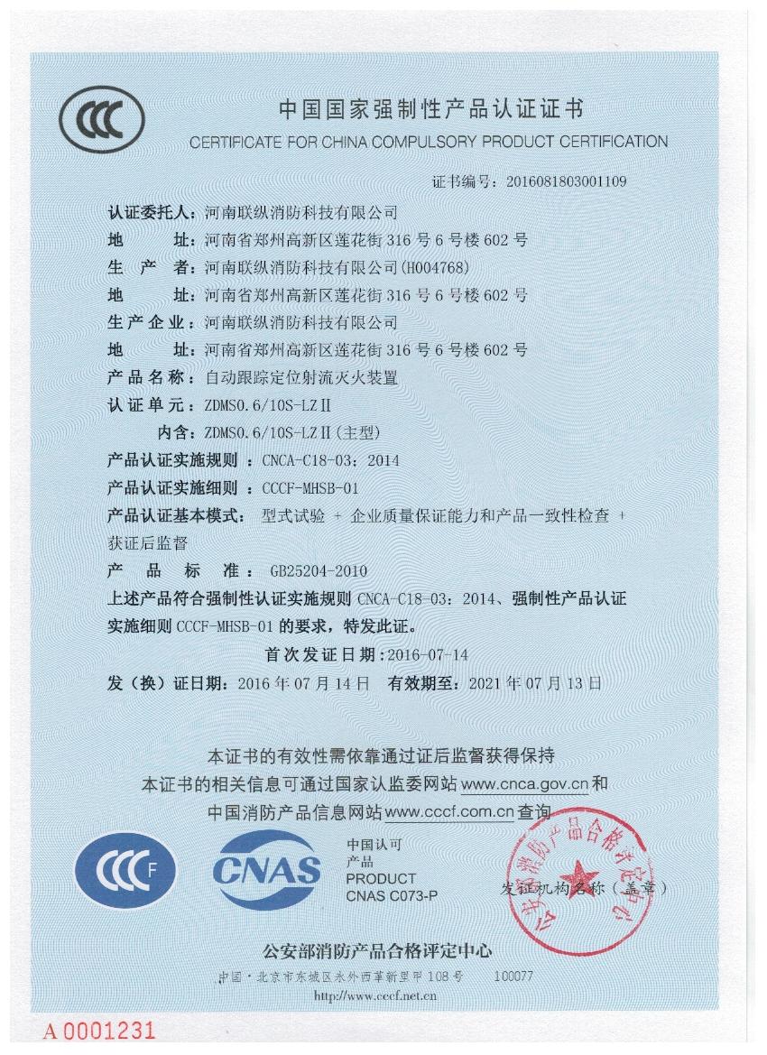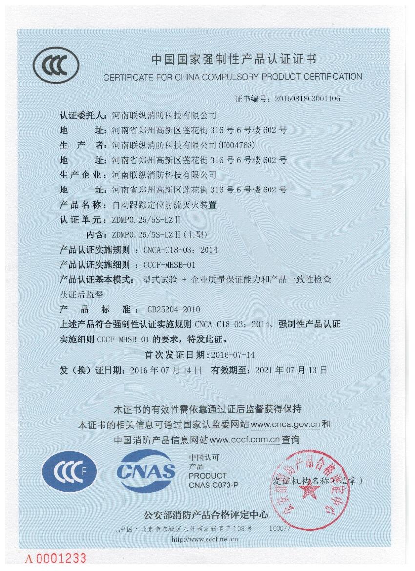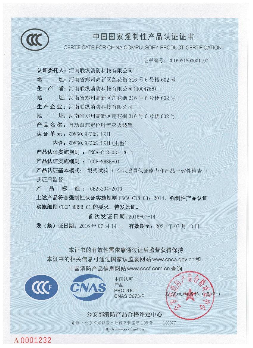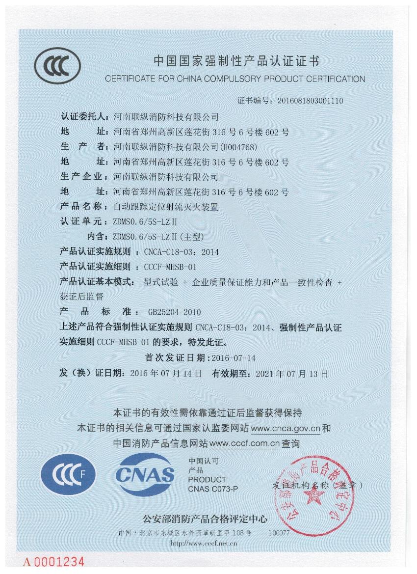 聯(lián)縱消防 3C認(rèn)證