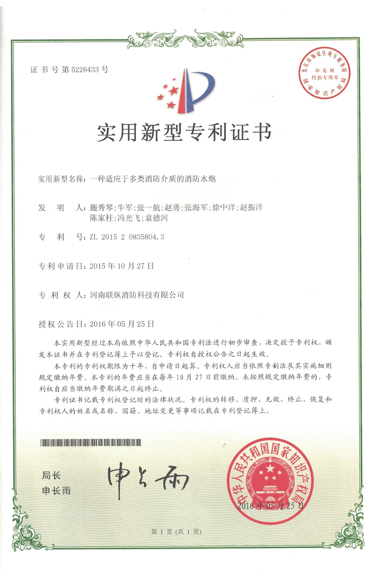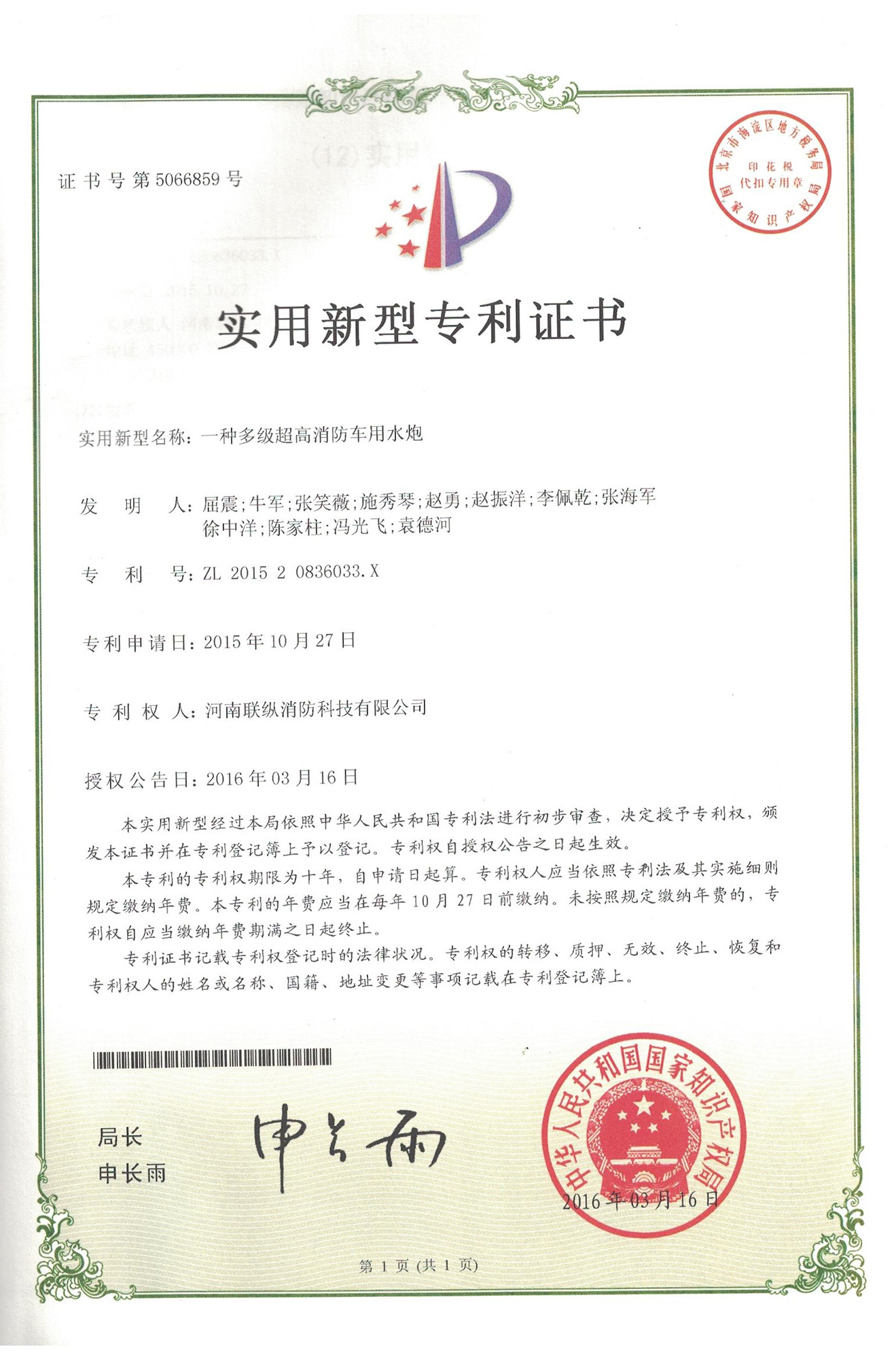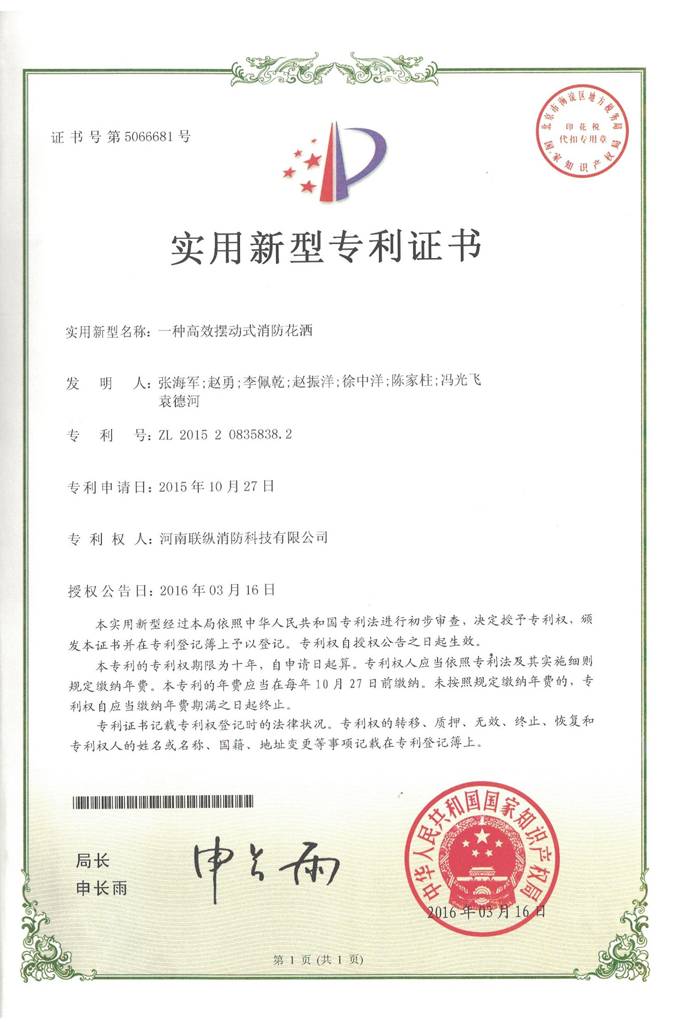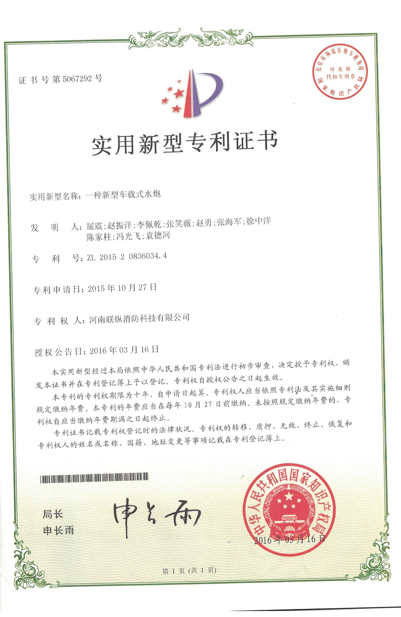 聯(lián)縱消防 專(zhuān)利證書(shū)